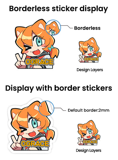 • Holographic film stickers and matte film sticker, temporarily unable to do borderless designs.