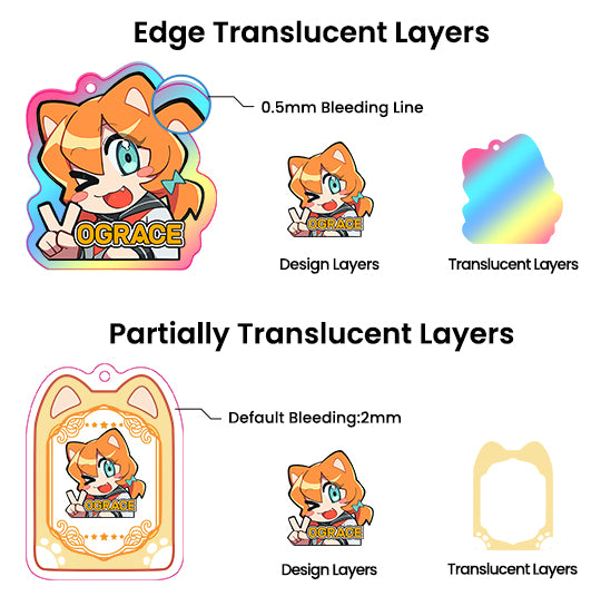 ②Wir müssen nur Ihr Design mit dem Hintergrund hochladen, die Schnittlinie muss nicht gezeichnet werden! Unser Designer wird es für Sie zeichnen.Custom Rainbow Acrylic Charms - VOGRACE