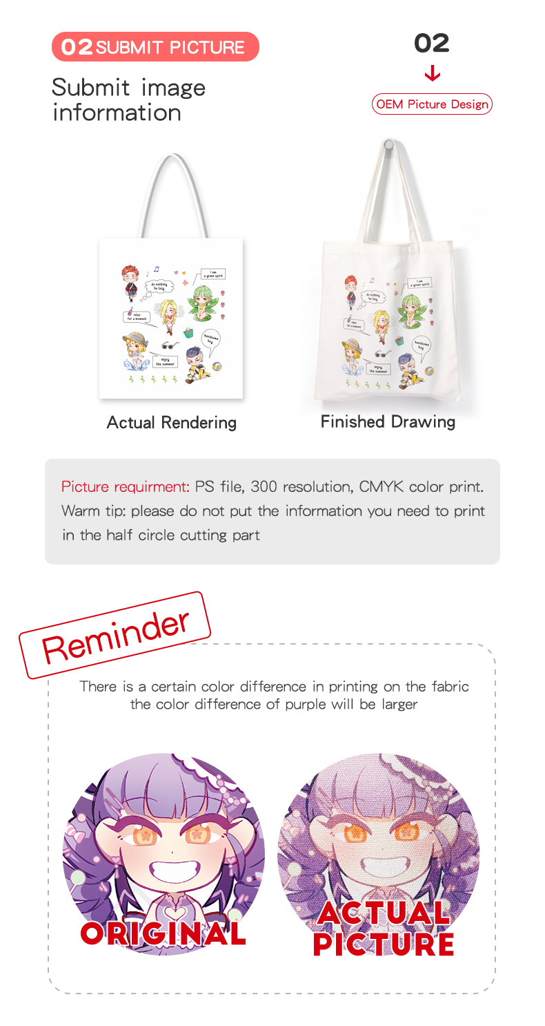 El patrón de la bolsa de lona es personalizado a tu gusto. Dos tamaños para elegir. MOQ: 5 piezas, pueden ser diseños diferentes. Cuanto más pidas, más descuento obtienes. Hay una cierta diferencia de color en la impresión sobre la tela.