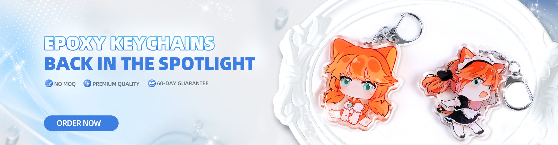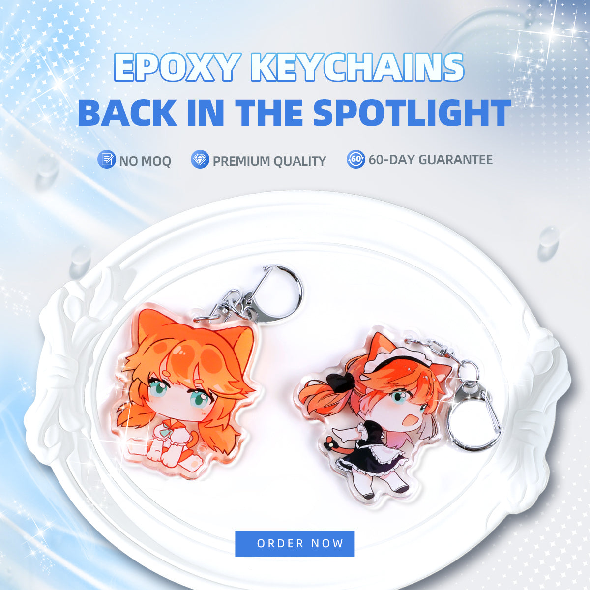 Acryl-Schlüsselanhänger, Aufsteller & Anstecknadeln – keine Mindestbestellmenge, ab 1. August